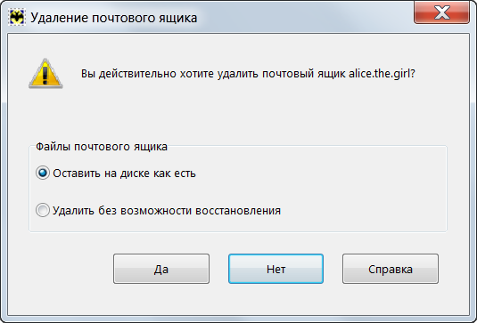 Нажмите на учетную запись правой кнопкой мыши (в списке папок) и выберите пункт Удалить почтовый ящик.