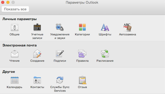 Нажмите на учетную запись правой кнопкой мыши (в списке папок) и выберите пункт Параметры.