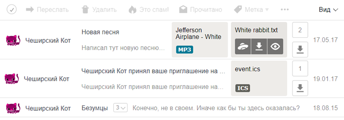 Некоторые вложения вы можете открывать в веб-интерфейсе Почты без установки дополнительных программ. Поддерживаются следующие форматы файлов: