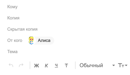 Вы можете вести переписку, используя разные адреса отправки — ваш основной почтовый адрес на Яндексе, один из почтовых алиасов или ваш адрес на другом сервисе (например, Gmail или Mail.Ru).