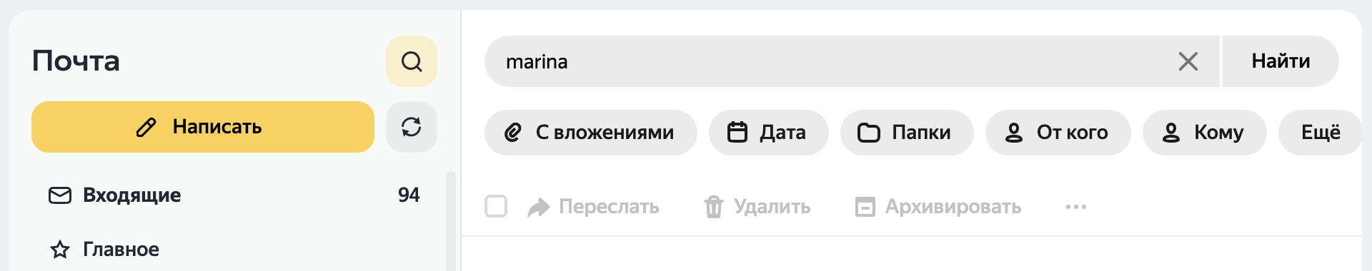 Если вы не помните точной формы слова, напишите в запросе любую — Яндекс Почта найдет письма со всеми вариантами этого слова. Например, по запросу смета вы найдете письмо с текстом «Направляю вам смету проекта» или «Какая из двух смет соответствует новым ценам?».