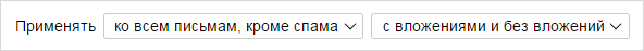 В блоке Применять выберите из списков, к какому типу писем вы хотите применять правило: