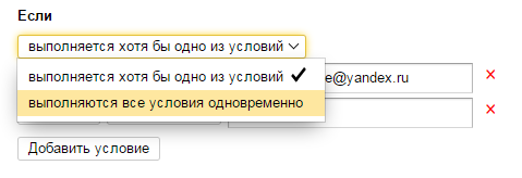 Для одного правила можно задать несколько условий, которые могут выполняться одновременно или по отдельности: