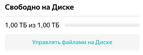 (iOS жүйесінде — Баптаулар) белгішесін басыңыз. Дискідегі орын бөлімінде жалпы Диск көлемі мен бос орын туралы ақпарат көрсетіледі.