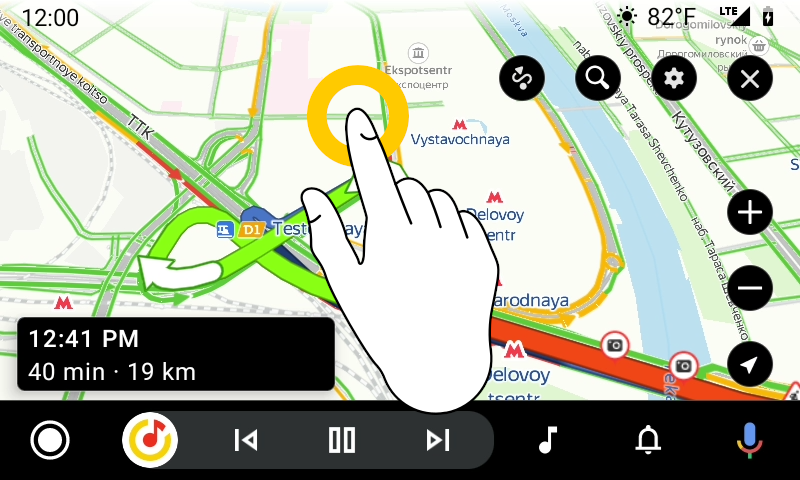 Долгое нажатие и остальные нажатия для взаимодействия не работают. Это связано с ограничениями Google. Например, вы не сможете открыть карточку организации, добавить или открыть дорожное событие, выбрать альтернативный маршрут на головном устройстве.