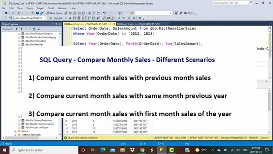 SQL Query | Compare monthly sales with previous month, same month previous year, first month of year