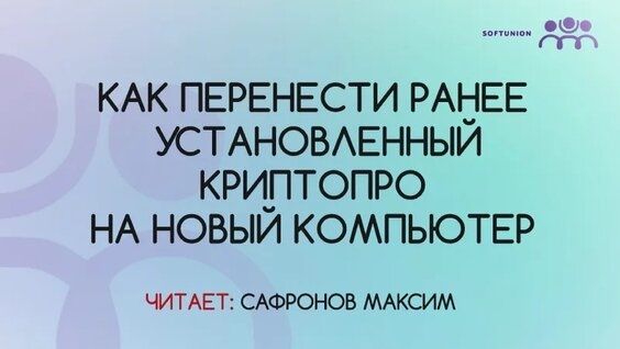 Как перенести ранее установленный КриптоПро на новый компьютер — Видео от Софт-Юнион: центр сопровождения 1С