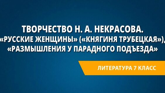 Творчество Н. А. Некрасова.«Русские женщины»(«Княгиня Трубецкая»),«Размышления у парадного подъезда»