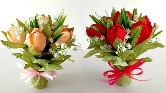 Легко и Просто Сделайте Красивый букет Тюльпанов своими руками из Гофрированной бумаги — Видео от Alesya Gor Diy
