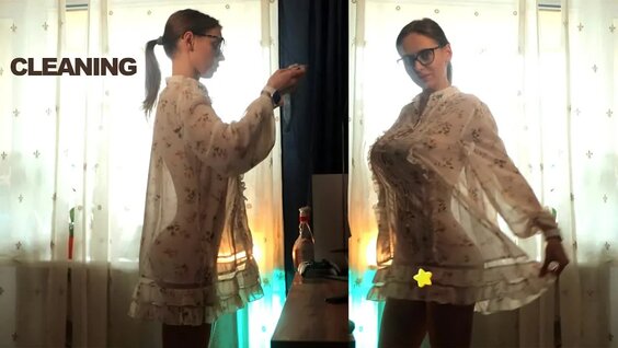 Transparent dresser and TV cleaning with Tina in a dress. — Видео от Tina G